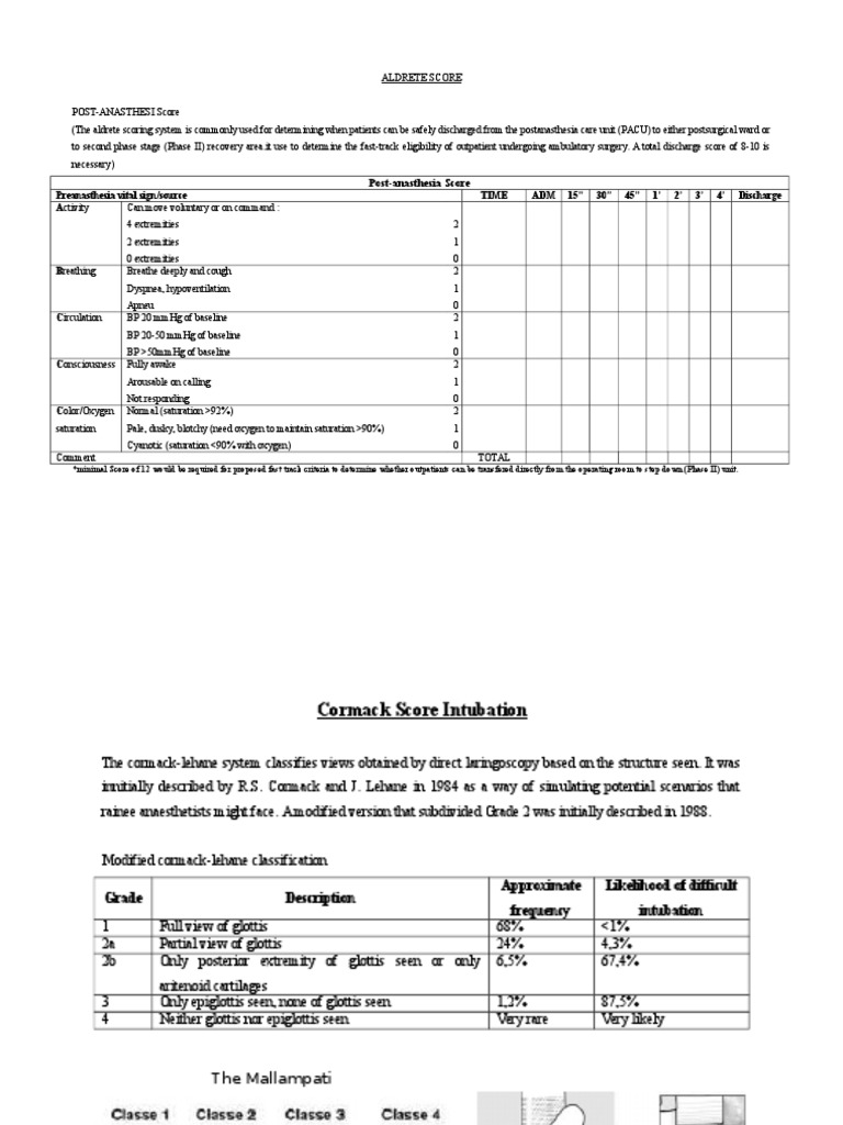 Modified aldrete scoring system. The Aldretes scoring system is a commonly used scale for determining when people can be safely discharged from the post-anesthesia care unit to either the postsurgical ward or to the second stage recovery area. Download Table Modified Aldrete scoring system. The modified Aldrete scoring system was originally used to determine fast-track eligibility 910.
