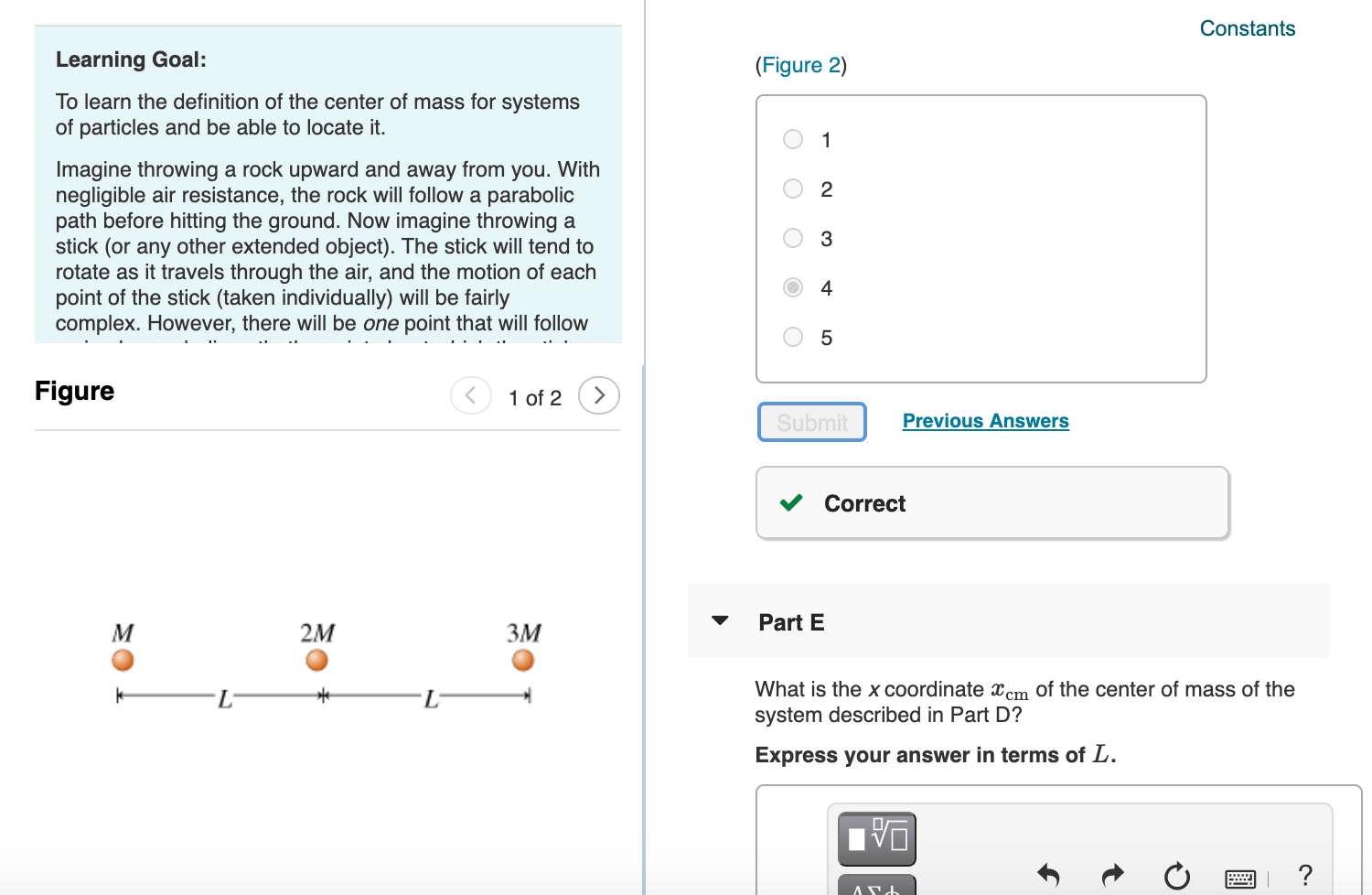 X_ cm M 0 2ML 3M 2L M 2M 3M 2LM 6LM 6M 133 L. The masses of Earth and Moon are and respectively. Express your answer in terms of m 1 m 2 x 1 and x 2.