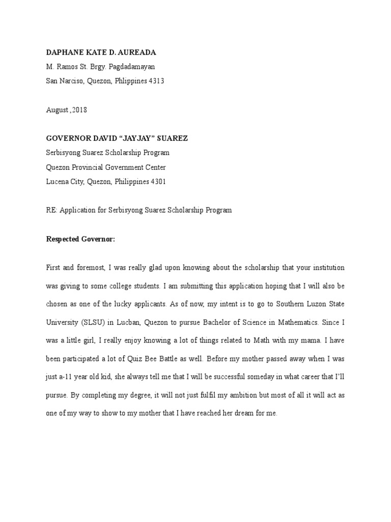 Scholarship Letter Tagalog